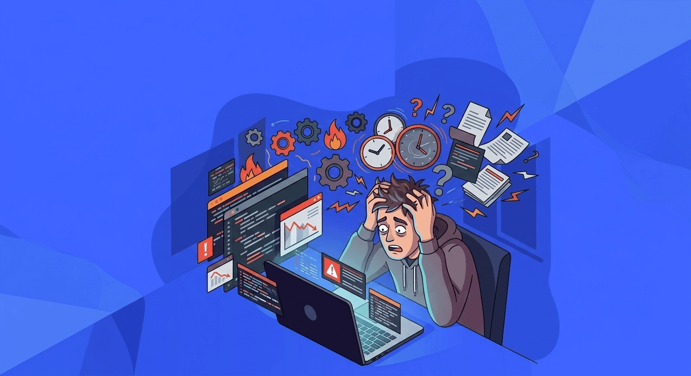 Last minute scrambles, scattered evidence, static and 1 big clutter. Trying to make things work while the bigger picture is lost.